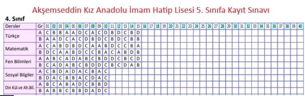 Cevap Anahtarı aşağıdaki gibidir. Bu hafta içerisinde optikler okunacak ve sonuçlar sitemizde yayınlanacaktır.